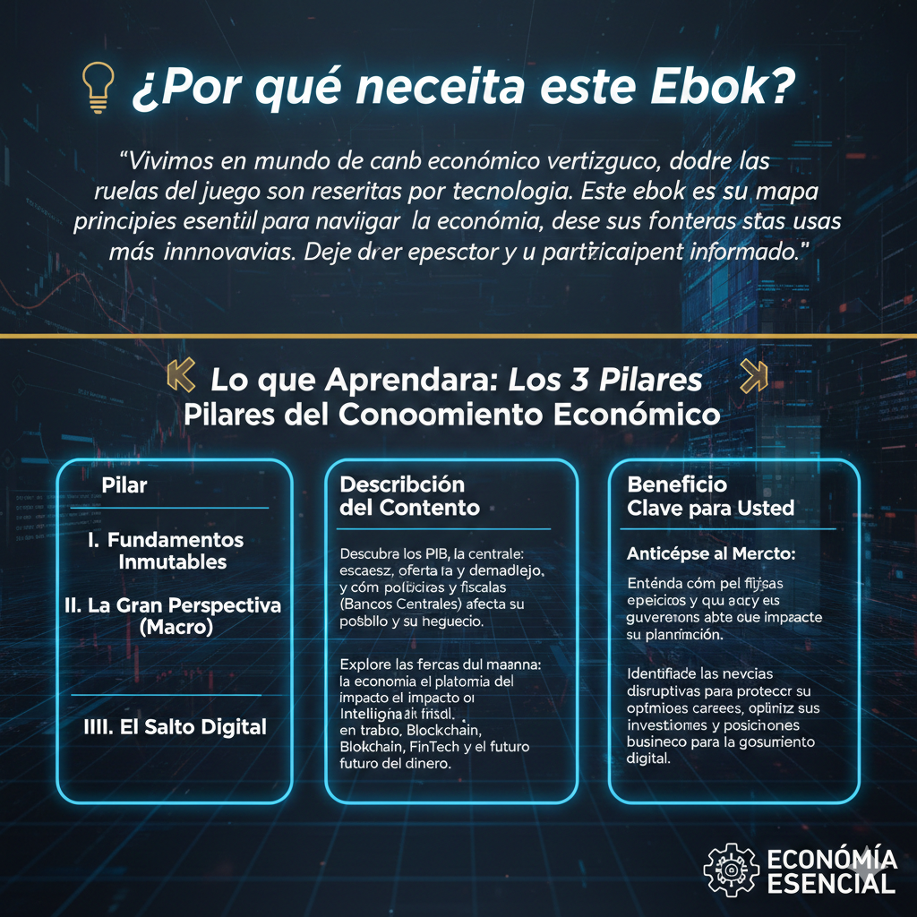 "Economía Esencial" es la guía definitiva y accesible que te lleva desde los fundamentos de la Microeconomía (Oferta, Demanda, Costos) y la Macroeconomía (PIB, Inflación, Política Fiscal y Monetaria) hasta los dilemas más urgentes del siglo XXI.